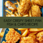 Keywords: sheet pan fish and chips, baked fish and chips, oven baked fish and chips, panko crusted fish, healthy fish and chips, cod recipe, steak fries