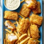 Keywords: sheet pan fish and chips, baked fish and chips, oven baked fish and chips, panko crusted fish, healthy fish and chips, cod recipe, steak fries