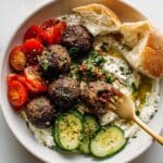 - Serve: On each plate, spread a generous swipe of tzatziki. Top with several warm meatballs, a scoop of the fresh tomato and cucumber salad, and a hunk of rustic baguette. Drizzle and dip everything with the vibrant green sauce for a punchy, fresh finish. Enjoy the big, bold flavors!