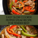 Keywords: slow cooker pepper steak, slow cooker beef recipe, easy slow cooker dinner, pepper steak, crockpot steak, beef and peppers