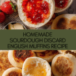 Sourdough discard English muffins are a delicious way to use up your sourdough starter discard while creating a perfectly soft and chewy breakfast treat. These muffins have that classic texture and a subtle tang, making them ideal for toasting and topping with butter or jam.