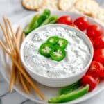 A zesty and creamy Spicy Dill Dip made with Greek yogurt, light sour cream, fresh jalapeño, and a blend of herbs and spices. Perfect for serving with vegetables, chips, or crackers, this dip offers customizable heat levels and a fresh, tangy flavor that enhances any snack or appetizer.