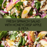 Keywords: spinach salad, apple salad, feta cheese salad, healthy salad, easy salad recipe, no-cook salad, toasted almonds, homemade dressing