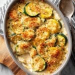 Keywords: squash casserole, zucchini bake, baked squash, cheesy squash casserole, side dish, vegetable casserole