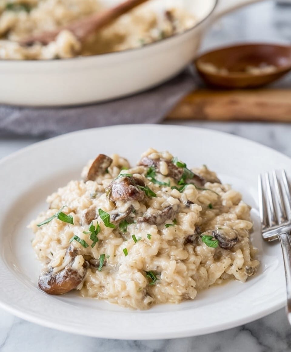 This creamy stovetop chicken and rice recipe combines tender chicken breasts, sautéed mushrooms and onions, fragrant garlic, and Italian seasonings with creamy Parmesan and milk for a comforting one-pan meal. The long grain rice cooks directly in the broth, absorbing all the savory flavors while staying perfectly tender. Ready in about 35 minutes, this dish is ideal for a hearty weeknight dinner that requires minimal cleanup.