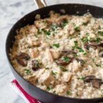 This stovetop creamy chicken and rice dish is a comforting and hearty meal perfect for busy weeknights. Tender chicken, sautéed mushrooms, and aromatic seasonings combine with creamy cheese and milk to create a satisfying one-pan dinner.