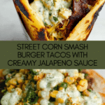Keywords: street corn tacos, smash burgers, creamy jalapeno sauce, Mexican tacos, ground beef tacos, taco recipe