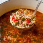 Keywords: stuffed pepper soup, ground beef soup, bell pepper soup, hearty soup, tomato soup, comfort food