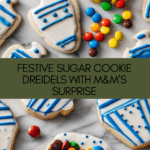 Keywords: Hanukkah, dreidel cookies, sugar cookies, holiday dessert, festive treats, M&M’s cookies, cookie decorating