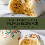 Deliciously rich Sugar Cookie Truffles made by blending baked sugar cookies with cream cheese and vanilla frosting, then coated in smooth melted white chocolate. These bite-sized treats are perfect for holiday parties or any festive occasion and are easy to make with simple ingredients.