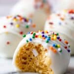 - Decorate and Chill: Immediately top each dipped truffle with sprinkles if desired. Place them back onto the parchment paper and chill in the refrigerator until the chocolate coating sets.