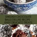 Swedish Chocolate Ball Deluxe, also known as Delicato balls, are rich and fudgy no-bake treats combining oats, coffee, coconut oil, butter, and dark chocolate. Coated in melted chocolate and desiccated coconut, these delicious snacks are perfect for a quick sweet fix or festive occasions.
