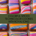 Technicolor Cookies are festive, spice-infused rectangular cookies decorated with vibrant royal icing ribbons in multiple colors. This recipe combines warming spices such as cinnamon, ginger, and cardamom with a bright orange zest flavor in a tender cookie base, finished with beautifully colored, glossy royal icing for a stunning presentation perfect for special occasions and gifting.