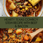 Texas Cowboy Stew is a hearty, flavorful dish packed with smoky bacon, tender beef, and a mix of beans and vegetables. It’s a perfect one-pot meal that’s satisfying and simple to prepare, ideal for cozy dinners or feeding a crowd.