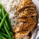 This chicken pairs well with rice, mashed potatoes, steamed vegetables, or inside wraps for a quick and tasty meal.