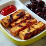 - Toast the Paneer: Arrange the marinated paneer fingers on the hot tawa and fry them until each side turns golden brown and slightly crispy, taking care to flip them gently for even cooking.