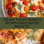 Keywords: Tomato Burrata Dip, Roasted Tomato Dip, Burrata Cheese Appetizer, Garlic Butter Baguette, Italian Dip Recipe, Party Appetizer