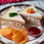 This Triple Club Sandwich is a delicious layered sandwich featuring a combination of fresh veggie filling, seasoned egg, and creamy chicken filling sandwiched between buttery toasted bread slices. It offers a perfect blend of textures and flavors, making it an ideal hearty snack or light meal.