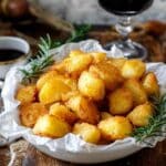 These truly crunchy roast potatoes are a perfect side dish for any meal. Achieving a golden, crispy exterior with a fluffy inside, they are sure to become a family favorite. The secret is using semolina and hot oil for that unbeatable crunch.