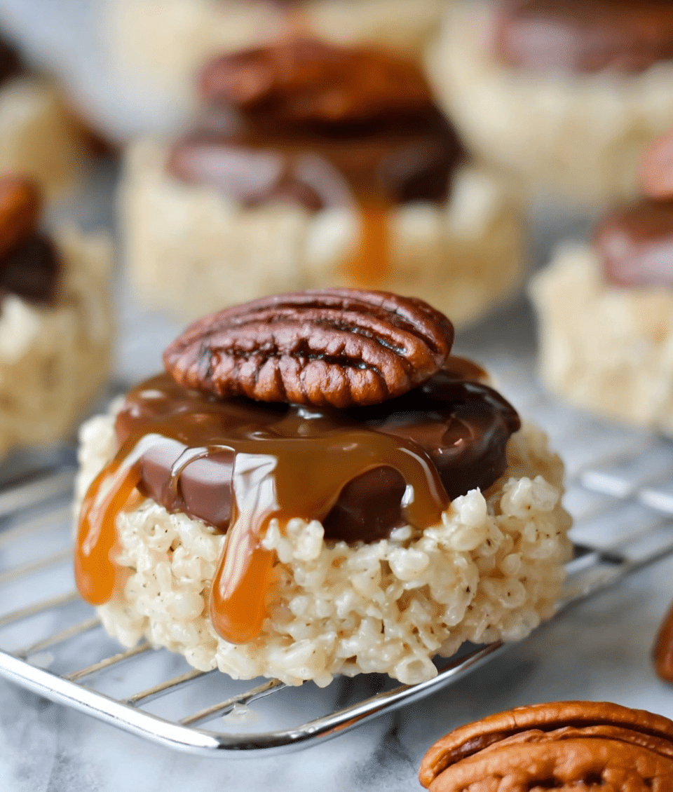 - Add candies and nuts: Immediately top each slightly underbaked cookie with one Rolo candy and one whole pecan, pressing down gently so they nestle into the cookie.