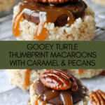 Turtle Thumbprint Macaroons combine chewy coconut macaroons with melty Rolo candies, crunchy pecans, and a sweet caramel drizzle for an irresistible treat that’s perfect for dessert or snacking.