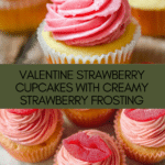 Keywords: Valentine Strawberry Cupcakes, strawberry cupcakes, vanilla cupcakes, strawberry frosting, homemade cupcakes, romantic dessert, holiday cupcakes