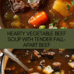This hearty Vegetable Beef Soup features tender, fall-apart stewing beef cooked slowly with an aromatic blend of vegetables, red wine or stout, and herbs. Enhanced with buttery mushrooms and root vegetables, this comforting soup is perfect for chilly days and pairs wonderfully with crusty bread for a fulfilling meal.