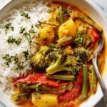 Keywords: vegetable curry, Thai curry, coconut milk curry, vegetarian curry, easy curry recipe, stovetop curry, Thai red curry paste, healthy curry, jasmine rice curry
