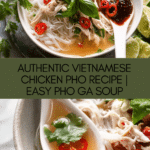 Authentic Vietnamese Chicken Pho (Pho Ga) is a fragrant, flavorful noodle soup featuring a clear, aromatic broth simmered with star anise, cinnamon, cloves, and fennel seeds. Tender chicken thighs add richness, served over delicate rice noodles and garnished with fresh herbs, bean sprouts, lime, and spicy condiments for a perfectly balanced and comforting meal.