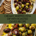 This Whipped Feta Dip with Roasted Olives is a creamy, flavorful appetizer perfect for entertaining or snacking. Roasting the olives and sun-dried tomatoes brings out rich, savory notes that pair beautifully with smooth whipped feta and Greek yogurt. Serve with fresh veggies or crackers for a guaranteed crowd-pleaser.