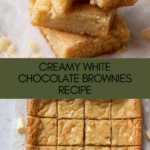 Keywords: white chocolate brownies, easy brownies recipe, buttery brownies, sweet dessert, baked brownies