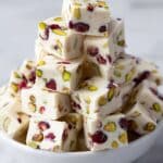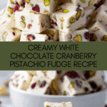Keywords: white chocolate fudge, pistachio fudge, cranberry fudge, no-bake fudge, holiday fudge, easy fudge recipe
